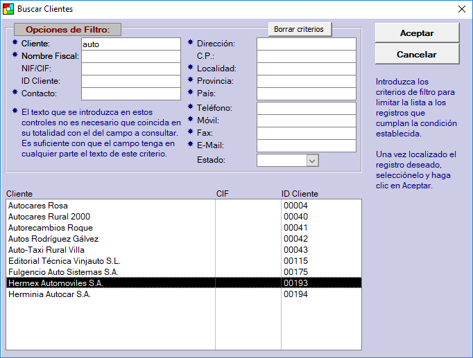 cada criterio que introduzcas, la lista se reducirá a los que cumplen