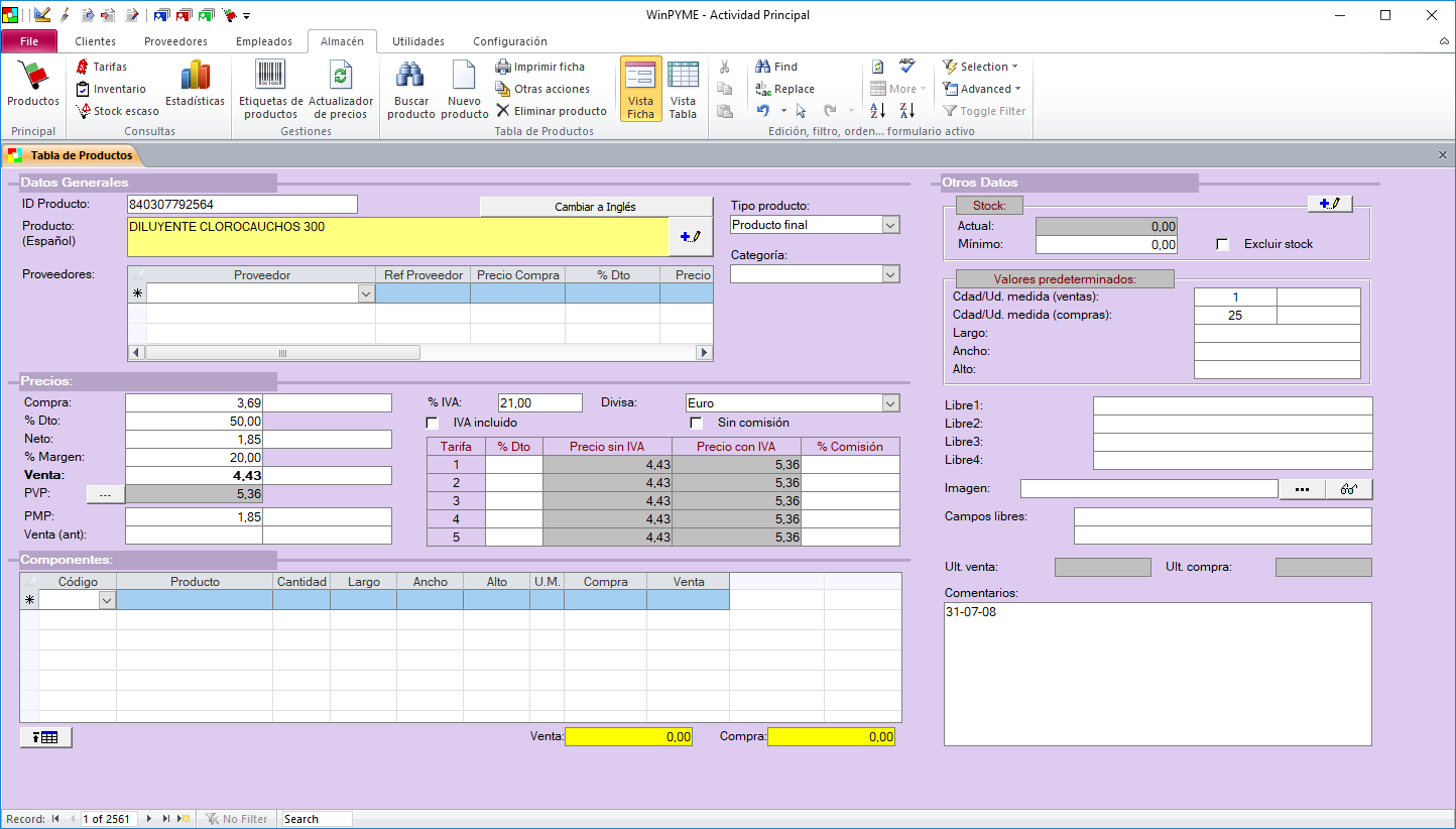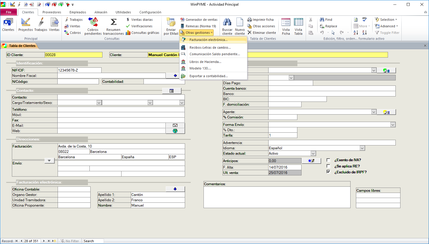 Capturas de pantallaAlgunas capturas de pantalla que te permiten considerar cómo es WinPYME. Pincha sobre ellas para verlas a un tamaño normal. Ventas: