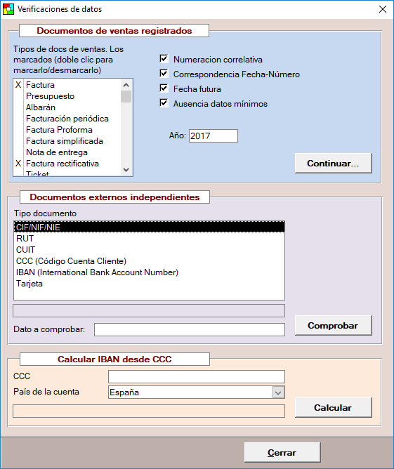 Además, puede comprobar la validez de algunos documentos: DNI, CIF, Tarjeta bancaria, IBAN, etc.